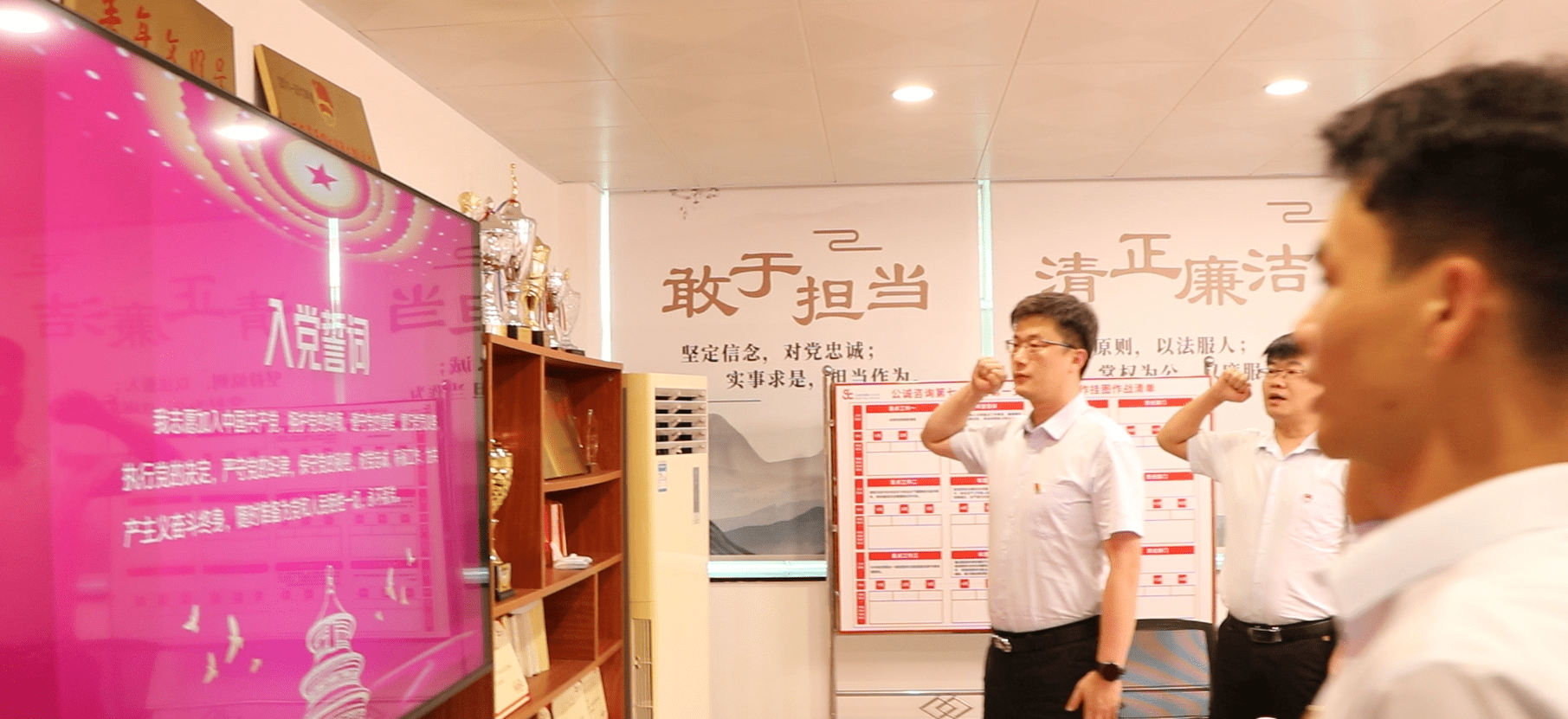 在送出政治生日贺卡和祝福后,各支部组织党员同志纷纷在工作范围内持续认领责任岗及先锋岗,并在各支部的挂图作战任务清单责任人栏庄重而神圣地签上自己的名字……他们用实际行动,为党组织献上了一份厚厚的回礼。